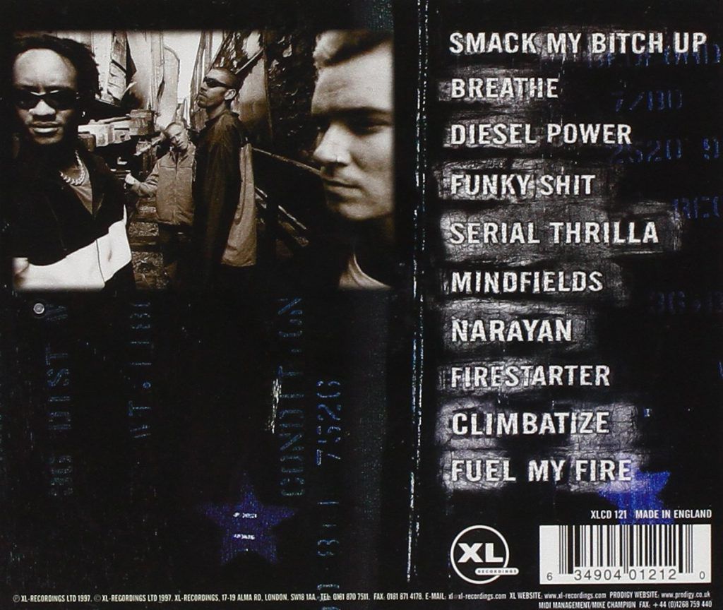 A far tremare le fondamenta del music biz ci pensano i contenuti del disco, violenti, dannatamente menefreghisti eppure intelligenti e ricercati oltre i confini della consapevolezza musicale. Apre le danze la ferale Smack My Bitch Up. Il brano, ormai diventato leggenda, gira attorno alla sample “Change my pitch up / Smack my bitch up” preso in prestito dal brano Give The Drummer Some degli Ultramagnetic MCs, crew dell’altrettanto leggendario Kool Keith, e che ha creato dissapori un po’ in ogni dove. Uno su tutti, e il più celebre, è lo scazzo venutosi a creare con i Beastie Boys nel 1998 durante il Reading Festival.