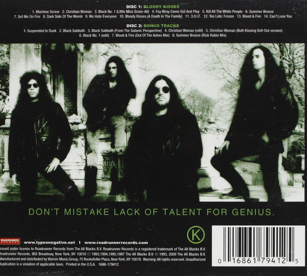 Le sfuriate misogine di “Slow, Deep And Hard” per fortuna non ci sono più – anche se in Too Late: Frozen, tra coloratissime atmosfere sixties e infernali rallentamenti sabbathiani, non manca qualche frecciatina a una vecchia fiamma che ha chiesto scusa “troppo tardi”. Sta di fatto che i Type O Negative di “Bloody Kisses” sono uomini nuovi e, in qualche frangente, sembrano addirittura voler chiedere perdono (in maniera sempre assolutamente irriverente però, come da loro tradizione) per gli eccessi e i contenuti infelici di alcuni brani degli esordi (limitiamoci a dire che probabilmente un personaggio del “livello” di Matteo Salvini potrebbe apprezzare molto le parole urlate da Steele in Der Untermensch).