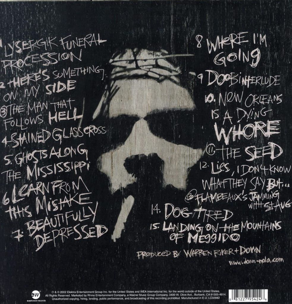 Il mese passa, i cinque escono dal capanno divenuto studio e tornano alle proprie attività. Il disco partirà alla volta di Nashville dove verrà ulteriormente trattato in una chiesa (strano caso) e poi prenderà il largo spargendo i propri gemelli in tutto il globo. Di lì a poco la Natura avrebbe riversato la propria spietatezza incolpevole su New Orleans. Ma i Down sono ancora qui, come la città, resistono e persistono. Ma questa è un’altra storia.