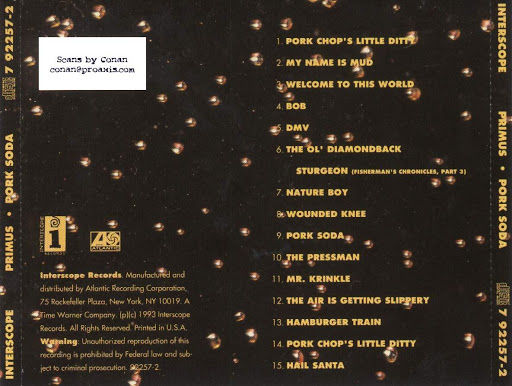 Per parlare dell’uscita di “Pork Soda”, risalente al 20 aprile 1993, devo partire da un flash-forward: due anni dopo, nel 1995 uscì “Tales From The Punchbowl” e chiesi: “Com’è il nuovo dei Primus?” “Pauroso” mi risposero. Usavamo il termine “pauroso” quando un album era strabiliante, incredibilmente bello. Comunque io li avevo sentiti nominare da poco e, anche se nel negozio del Dena, il “Vinyl Storm”, suonava Wynona’s Big Brown Beaver, comprai il precedente “Pork Soda”, un po’ perché il prezzo era inferiore, un po’ per il timore di ascoltare qualcosa di troppo strano, di mai sentito prima, di indefinibile, infatti ho letto da qualche parte che per definire la musica dei Primus c’è solo il termine “Primus”, cioè, a quanto ho capito, è l’unica band ad avere il proprio nome come spiegazione della propria musica. Quindi, in questo articolo, vorrei, ricordando l’importanza di “Pork Soda”, arrivare a trovare una definizione.