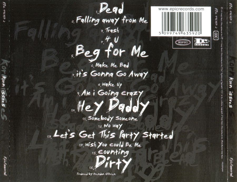 Il mixaggio del leggendario Brendan O’Brien dava lustro ed esaltava ulteriormente l’immediatezza e la freschezza del sound che come un ariete batteva sul petto. Ripeto, avevo 12 anni, e gli anni ’90 stavano finendo, i confini tra hip-hop, metal, ecc. stavano semplicemente scomparendo e si vedevano in giro aberrazioni, le più svariate, di crossover (anche i Korn, definiti come Nu Metal….vabbè, mi comprai anche un manuale antologico sul tema, sempre sulla scia di “Issues“) e sì, non tanto i Korn, quanto “Issues“, mi catturò per la sua forza, le sue melodie interposte tra wall of sound controllati, l’espressività di un Davis in stato di grazia, un tutt’uno per quest’opera conchiusa, fine a sé, e che è bene che rimanga come tale.