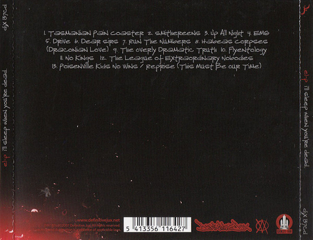Improbabile medium degli anni zero, El-P è riuscito a fare dialogare i propri fantasmi con quelli di un’intera nazione, denunciandone l’inarrestabile imbruttimento davanti a sconvolgimenti di portata epocale. Allo stesso modo è riuscito a mantenere un approccio radicalmente e fieramente hip hop pur attingendo da mondi lontani anni luce da esso, la lista degli ospiti che hanno deciso di accompagnarlo in questo viaggio parla da sé. Non era e non voleva essere un disco per tutti ma a quei coraggiosi che volessero addentrarvisi, rischia seriamente di offrire un cambio di prospettiva non indifferente.