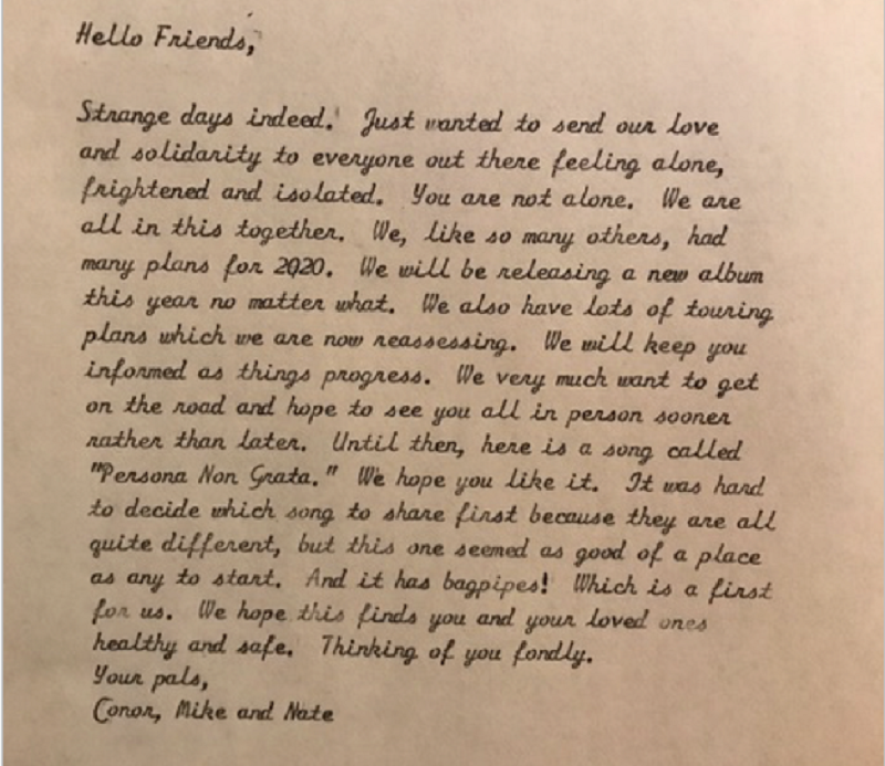 Il brano è accompagnato da una lettera scritta dagli stessi Bright Eyes e indirizzata a “tutti quelli che in questi strani giorni si sentono soli, spaventati e isolati”.