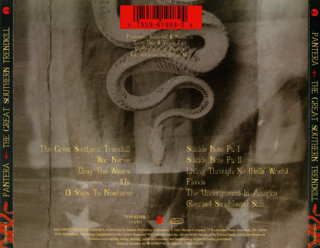 Il bello dell’essere appassionati di musica, è che non sai mai cosa potrai scoprire domani, mettendo su un disco… oggi al massimo facendo un click su Youtube o Spotify. Ma al di là delle note nostalgiche, quando mi capitò tra le mani per la prima volta un disco dei Pantera, un bootleg del 1994, ero reduce dall’ascolto di band quali Megadeth, Sepultura, Testament, Kreator oltre ai sopracitati Metallica e Slayer. Sapendo ben poco sul loro conto e sulla loro storia, dopo essere rimasto affascinato dal loro mood, così maestoso e violento, andai a spulciare ed ascoltare tutto ciò che trovavo. Rimasi piacevolmente sorpreso dalle uscite di “Cowboys from Hell” (1990), “Vulgar Display Of Power“ (1992) e “Far Beyond Driven” (1994), tanto da essere quasi dubbioso che i futuri lavori della band avrebbero potuto rimanere su tali livelli. Ma i Pantera, con “The Great Southern Trendkill” (1996), fecero vedere a tutti che erano in grado di fare ciò che volevano con la musica, di plasmarla a loro piacimento, senza tradire mai il loro sound originale.
