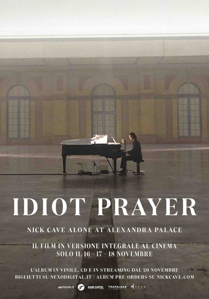 Notizia di oggi è invece che quel concerto sarà pubblicato a novembre come live-album, accompagnato da un film – realizzato Robbie Ryan – proiettato nei cinema di tutto il mondo. “Idiot Prayer: Nick Cave Alone at Alexandra Palace“, questo il titolo, sarà nelle sale cinematografiche italiane i prossimi 16-17-18 novembre per essere poi seguito dal disco, disponibile in Cd, vinile e digitale a partire dal 20 novembre (pre-order già disponibile sul sito ufficiale di Nick Cave).