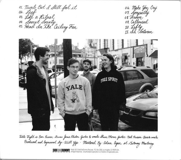 Con Like a Ritual e Secret Society i Title Fight giocano meno d’attacco, mostrando più consapevolezza anche nella scrittura di brani maggiormente strutturati. Della prima si è già detto all’inizio, forse primo vero momento emocore “classico” del disco. La seconda abbraccia soluzioni e ritmiche quasi vicine a un certo pop-punk californiano che quando voleva dare spessore ai brani decideva di giocarsi la carta dei power-chord suonati col basso. Head In The Ceiling Fan è invece la maturità vera dei Title Fight. Primo rallentamento ritmico del disco inteso anche come momento in cui si dilatano le chitarre, sperimentando con il flanger e i reverberi dando al brano più ambiente e più coda. Mood catatonico ma assolutamente a fuoco e in linea con il resto del disco. Un’elegia forse per la prima volta romantica, di un amore ovviamente in cui c’è solo da perdere (Glued my green eyes to your face/ I’m Blind).