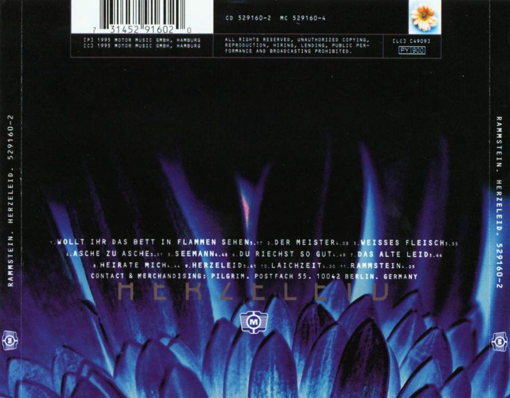 Lindemann e compagni danno prova di non essere solo metallo e fiamme e con la ballad Seemann ne forniscono la loro prima e ampia dimostrazione. Lindemann padroneggia il suo vocione in modo notevole, tanto che l’aspra lingua germanica risulta quasi più dolce. Dopo questa breve pausa melodica, si riaccende l’electro-industrial con Du Riechst so Gut dove la componente tanz la fa da padrone in modo molto piacevole. Cupe e fortemente industrial Das Alte Leid e Heirate mich, scandiscono ritmiche granitiche e muri di suono imponenti. Anche la titletrack sfodera un ottimo sound metal, che a tratti forse si perde un po’ nella marcia serrata delle strofe, ma il frontman e le tastiere di Doktor Flake fanno un ottimo lavoro di sfaccettatura che dà al brano un po’ più di respiro. Ritmi ancora più incalzanti, ci fanno rimbalzare tra tecno e metal nell’efficacissima Laichzeit, che fornisce la prova dell’attitudine della band tedesca a testi osceni e provocatori. Dulcis in fundo, troviamo una vera chicca, inserita giustamente come gran finale, quasi a spezzare le ritmiche incalzanti udite fino ad ora: Rammstein, una traccia claustrofobica creata su un riff metallico e lento che va a sposare la voce sinistra e minacciosa di Lindemann che ci trascina sul fondo del disco senza ulteriori sussulti.