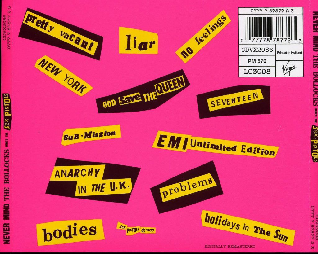 È proprio questa la cruda realtà che si cela dietro a questo disco e dietro a brani come Holiday In The Sun, No Feelings o Pretty Vacant. In Problems, lo spiritato frontman rigurgita il ritornello “il problema sei tu!” ed è proprio questo che i Sex Pistols rappresentavano e rappresentano ancora oggi: parole di fuoco che scandiscono l’immagine di una gioventù stanca, sporca con vestiti laceri e capelli dritti, disgustata e incurante delle regole del buono costume e della società civile, pronta a sputarti in faccia e mandarti a fanculo se hai qualcosa da obbiettare.