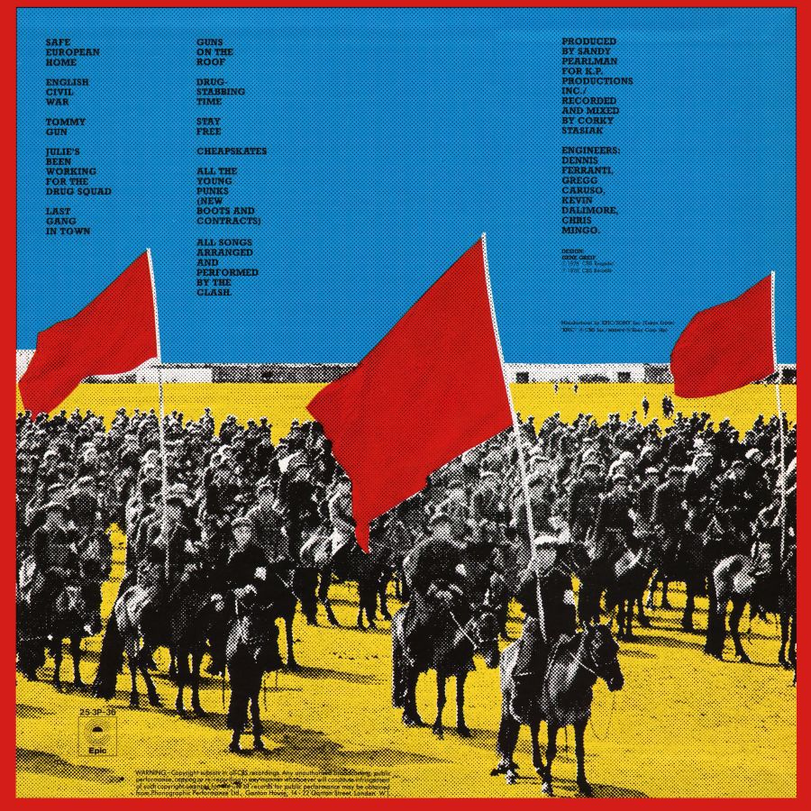Poi arrivava Tommy Gun, il pezzo più brillante ed irresistibile del lotto, un emozionante power punk che chiariva la posizione del gruppo sul terrorismo. Stay Free era quasi commovente, con la voce da adolescente ribelle di Mick Jones alle prese con una storia d’amicizia ai tempi del punk. L’orizzonte s’allargava col pianoforte honky tonk di Julie’s Been Working For The Drug Squad, una saltellante rock song che raccontava l’incredibile vicenda dello smantellamento di una delle maggiori attività di produzione di LSD della storia avvenuta in un piccolo paesino del Galles nel marzo del ’77.