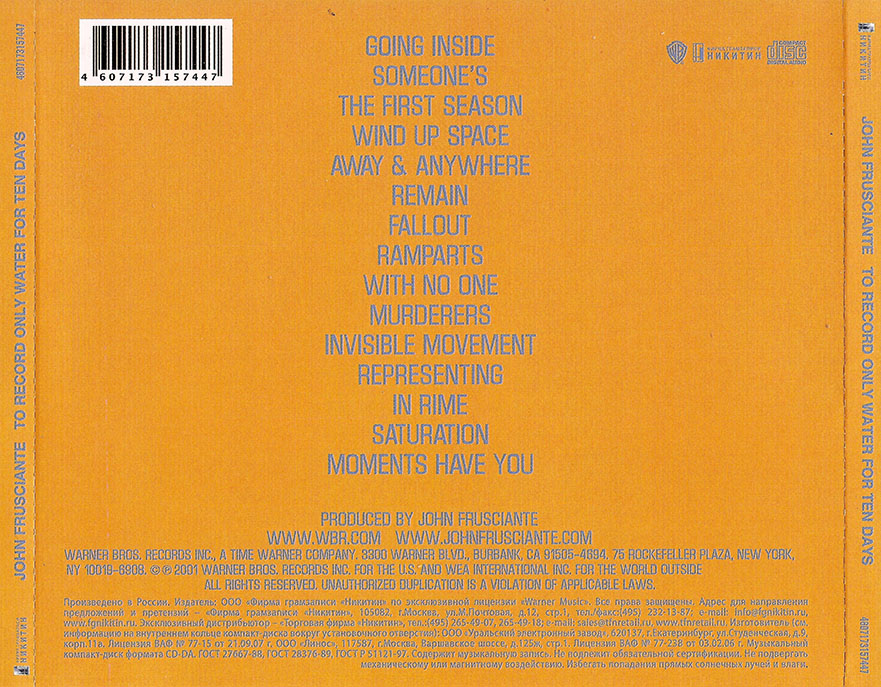 Qui si definisce il sound frusciantiano, quei cori che nella band madre fanno da contraltare al resto finalmente prendono forma definitiva, dando luogo a qualcosa di splendido. Non è sopito l’amore per Johnston, ma si tramuta in qualcosa di più raffinato, completo, incantevole, persino. Ci sono tanti mostri, alle spalle di Frusciante, e nell’acqua diluiscono la propria esistenza. Si isola, John, e isolandosi, con un registratore da quattro soldi li guarda tutti negli occhi, lo sguardo che si perde fuori dalla finestra a chi attende il malanno, canta “Leave my lonely mind a cell / Keep flowing on a drill / I keep holding on to myself”. Le chitarre elettriche si fanno distanti, il lo-fi una religione tutta sua, l’elettronica si insinua, la voce un tocco di spettri lontani, leggera, sofferta, innamorata, disincantata, disperata. Non sembra nemmeno membro di una delle band rock più blasonate e ricche del pianeta quando, su Remain, si strugge “I can’t go on, I’m lost / I’ll be there turning on and off”, mentre attorno si aprono parentesi sintetiche tra techno e kraut (tornerà, con Trickfinger e l’album “Maya”, e i fan lo insulteranno, dimentichi del passato, o forse mai interessati, fissati con ‘ste chitarre).