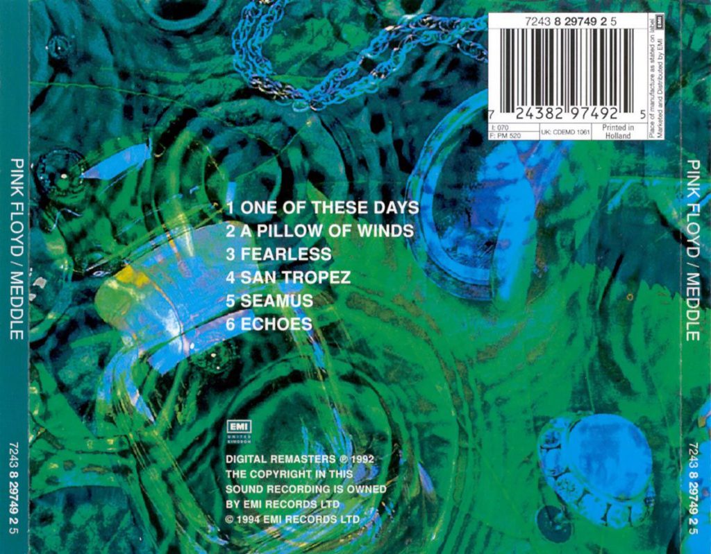 Partiamo dalle origini: “Meddle” non fu un disco semplice, in mancanza di materiale, e senza alcuna idea precisa della direzione da dare all’album, la band sviluppò una serie di esperimenti sonori che avrebbero ispirato il pezzo centrale del disco, la famosissima suite Echoes, che consegnerà alla storia della band con un altro brano fondamentale, One Of These Days. Anche se molti dei successivi lavori della band sarebbero stati permeati da un tema unico incentrato sulle liriche scritte principalmente da Roger Waters, “Meddle” fu più uno sforzo collettivo di gruppo. La copertina è l’unica firmata dagli stessi Pink Floyd, che rifiutarono la proposta di Storm Thorgerson e suggerirono un primo piano ravvicinato di un orecchio sott’acqua, fotografato da Bob Dowling. Addirittura Thorgerson, che curò l’aspetto grafico finale, si dichiarò in seguito insoddisfatto del risultato, perché insieme a Aubrey Powell, l’idea era quella di fotografare l’ano di un babbuino. La band incominciò a lavorare a del materiale di nuova composizione agli Abbey Road Studios. All’epoca, Abbey Road era equipaggiato solo con banchi di registrazione ad otto tracce, che i Pink Floyd trovarono insufficienti alla crescente complessità della propria musica.