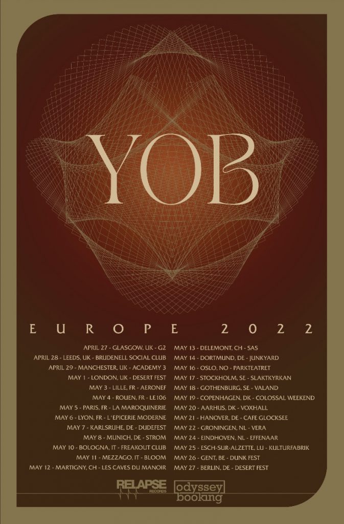 Non solo gli Yob pubblicano una versione rimasterizzata e remixata del loro sesto album “Atma” per Relapse Records, ma annunciano anche il loro tour europeo che avrà luogo il prossimo anno. Saranno anche in Italia per due date nel mese di maggio.