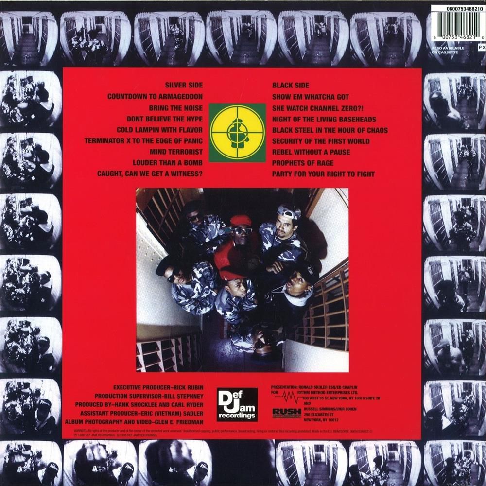 I Public Enemy si sono formati attorno al concerto di Chuck alla stazione radio studentesca di Adelphi. Un album di debutto (“Yo! Bum Rush the Show” del 1987) e un tour con i Run-D.M.C. Lo spettacolo dal vivo era avvincente, Chuck e Flav inseguivano il palco mentre il “Ministro dell’Informazione”, il professor Griff, interveniva con feroci diatribe politiche e gli S1w eseguivano esercizi di combattimento silenziosi con fucili giocattolo in sottofondo. Era il teatro del potere nero. “Yo!” si è fermato a circa 400.000 unità vendute, una modesta affluenza sulla di “Licensed to Ill” dei Beastie Boys. Pubblicato l’estate successiva, il secondo album dei Public Enemy, “It Takes a Nation of Millions to Hold Us Back” è stato un sfacciato perfezionamento dei temi di “Yo!” e un pugno alle mascelle dei detrattori. “Nation” pullula di coscienza sociale e didattica. Il messaggio non potrebbe attirare le masse senza la leggerezza: leggerezza ingannevole senza la grinta rivoluzionaria che gli dava peso. «La maggior parte delle persone diceva che la musica rap è rumore», ha detto Hank Shocklee a Rolling Stone nel 1989, «e abbiamo deciso: ‘Se pensano che sia rumore, mostriamo loro il rumore”»: alza il volume, Bring the Noise! E allora: in She Watch Channel Zero?! prendono il riff centrale di Angel of Death degli Slayer; in Night of the Living Baseheads una scuderia di campioni di James Brown con oltre una dozzina di schegge soul e rap assortiti e nel bridge troviamo UFO dei ESG e Fame di David Bowie.; frammenti di discorsi leggendari di Jesse Jackson e Malcolm X formano il tessuto connettivo tra le canzoni per un’esperienza di ascolto unificata.