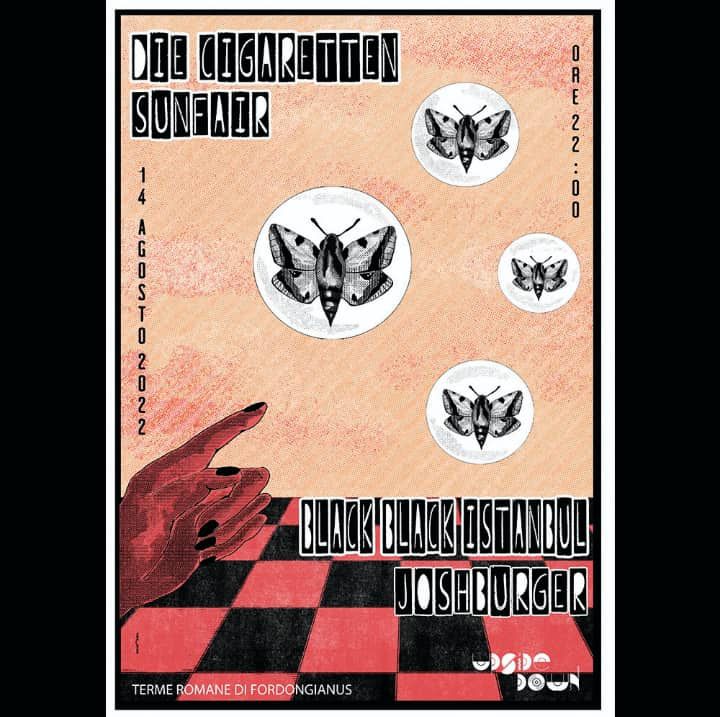 Per gli abitanti dell’isola sarda, i Black Black Istanbul tornano sul palco Domenica 14 Agosto all’ Upside Down Kiosk Bar, a Fordongianus (OR) assieme ai conterranei Sunfair, Josh Burger e i Die Cigaretten.