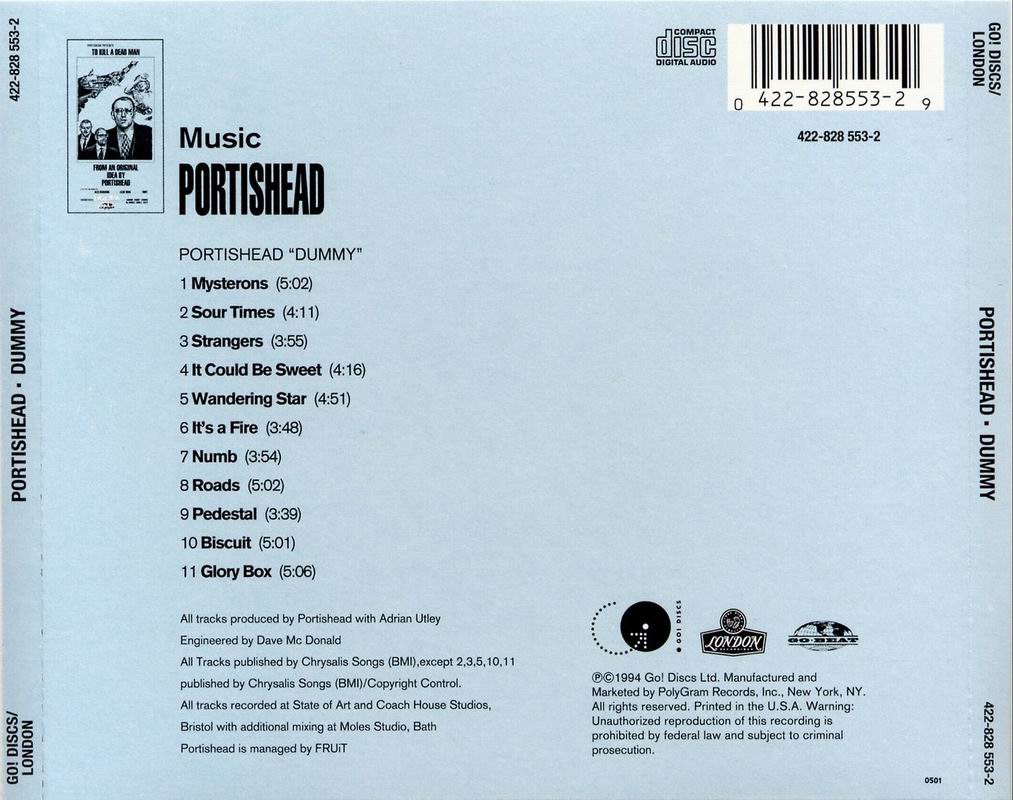 E fin qui, siamo nella migliore tradizione delle cantautrici sentimentali e profonde, tanto amate dalla Gibbons. Ma il beat è un altro. “Ogni beat è una lotta contro una forza schiacciante”, hanno detto di “Dummy”. Il dub, la psichedelia e l’elettronica rallentata di Bristol sono nel codice genetico di Barrow, che li porta nella band. “Dummy”, a dissezionarlo con attenzione, è tutto un loop di suoni, con un’attenzione per lo spazio mai ascoltata prima. A ben ascoltarli sono loop, spesso, intenzionalmente asimmetrici. Tutto è intenzionale in questa opera. A cominciare dal sound, irripetibile e distintivo. Un sound ottenuto lavorando con strumenti puramente analogici. Eravamo in epoca di piena esplosione dell’audio digitale, un’epoca nel quale la gente cominciava a disfarsi dei vinili e dei giradischi. Ma i Portishead no. Avete presente l’inizio di Glory Box? Quel rumore di fondo, tipo una puntina che scorre su un vinile e che per un attimo ti fa cercare con lo sguardo il giradischi di famiglia che non sai più dove sta da tanto tempo? I Portishead, con il fidato ingegnere del suono Dave McDonald, hanno registrato tutto analogicamente, lo hanno riportato su vinile e poi hanno sottoposto il vinile in questione ad un processo di “invecchiamento”, che comprendeva l’usarli come skateboard sul pavimento dello studio. Il risultato di questo “invecchiamento” è quel che ascoltiamo noi e che rende assolutamente unico il sound di “Dummy”.