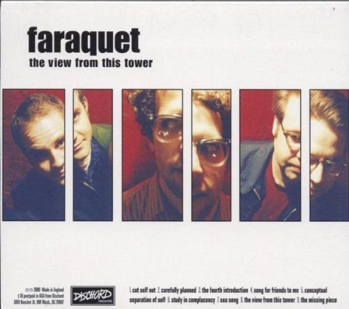 È vivida nella mia memoria la prima volta che ascoltai un loro brano; era nella compilation “20 Years of Dischord” del 2002, loro erano già sciolti ahimè, ma Cut Self Not contenuta in quel disco, che poi è il primo brano su “The View From This Tower“, catturò subito la mia attenzione e mi conquistò a partire dal giro di basso iniziale, dalle aperture melodiche e jazzate e dai vari sali e scendi emotivi che lo compongono, così come il finale sospeso che mi consigliava sostanzialmente di andare a riscoprire per intero quel disco. Così feci, e non me ne pentii affatto: infatti, anche il secondo brano Carefully Planned che compone il lavoro ha le splendide caratteristiche della canzone che me li fece conoscere, forse addirittura espresse pure meglio. Sembrava tutto facile per i Faraquet, l’abilità nel passare da un ritmo ad un altro totalmente diverso è sorprendente. Oltre alla notevole capacità di scrittura è incredibile la naturalezza degli arrangiamenti, che non risultano mai forzati ma anzi riescono a rendere il tutto fluido e sensato. Dopo un paio di altri ottimi brani leggermente più tirati, The Fourth Introduction e Song For Friends To Me, nei quali compare anche la tromba per la prima volta, ci si avvicina verso l’apice creativo del disco. Conceptual Separation of Self è un brano dispari delicato e di una dolcezza quasi nostalgica incredibile (qualcuno ha detto emo?) anche grazie all’aggiunta di archi che squarciano la tensione fino al crescendo centrale da pelle d’oca, un capolavoro. Mi ripeterò nuovamente ma raramente ho sentito ritmo e melodia unirsi in un matrimonio così perfetto come in questa meravigliosa canzone. La successiva e geniale Study in Complacency invece è più sostenuta ed ha un mood differente: il banjo che arriva all’improvviso è da applausi così come il ritmo sincopato subito dopo che fa da ponte per poi ripartire verso un finale sempre di grande spessore Il ritmo la fa da padrone ma arriva la melodia alla fine, c’è sempre, è inutile farsi false illusioni su questo disco, e quando arriva vorresti che non finisca più. Sea Song inizia dolcemente, prosegue con una sorta di “samba” in levare, per poi trasformarsi in un post rock sognante che lentamente evolve in qualcosa di più inquietante dal sentore di Slintiana memoria e poi infine cadenzato con la solita classe nel saper modellare e trasformare improvvisamente ogni canzone. Con la title track con i suoi controtempi iniziali sembra di ascoltare gli ultimi Don Caballero, quanto meno fino a metà brano, perché poi nuovamente si insinua la melodia ed il cantato delicato su una base però ovviamente non dritta, cosa difficilissima, tuttavia senza accorgersene si ritorna nel finale selvaggio dalle parti dei Don Cab.