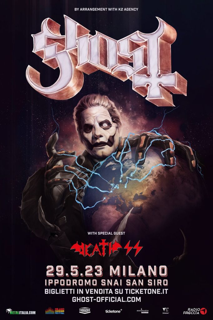 I Ghost hanno annunciato oggi le date del loro nuovo tour europeo che li vedrà impegnati a partire dal mese di maggio. La band svedese farà ritorno in Italia alla fine di maggio per un solo appuntamento di cui trovate di seguito i dettagli: