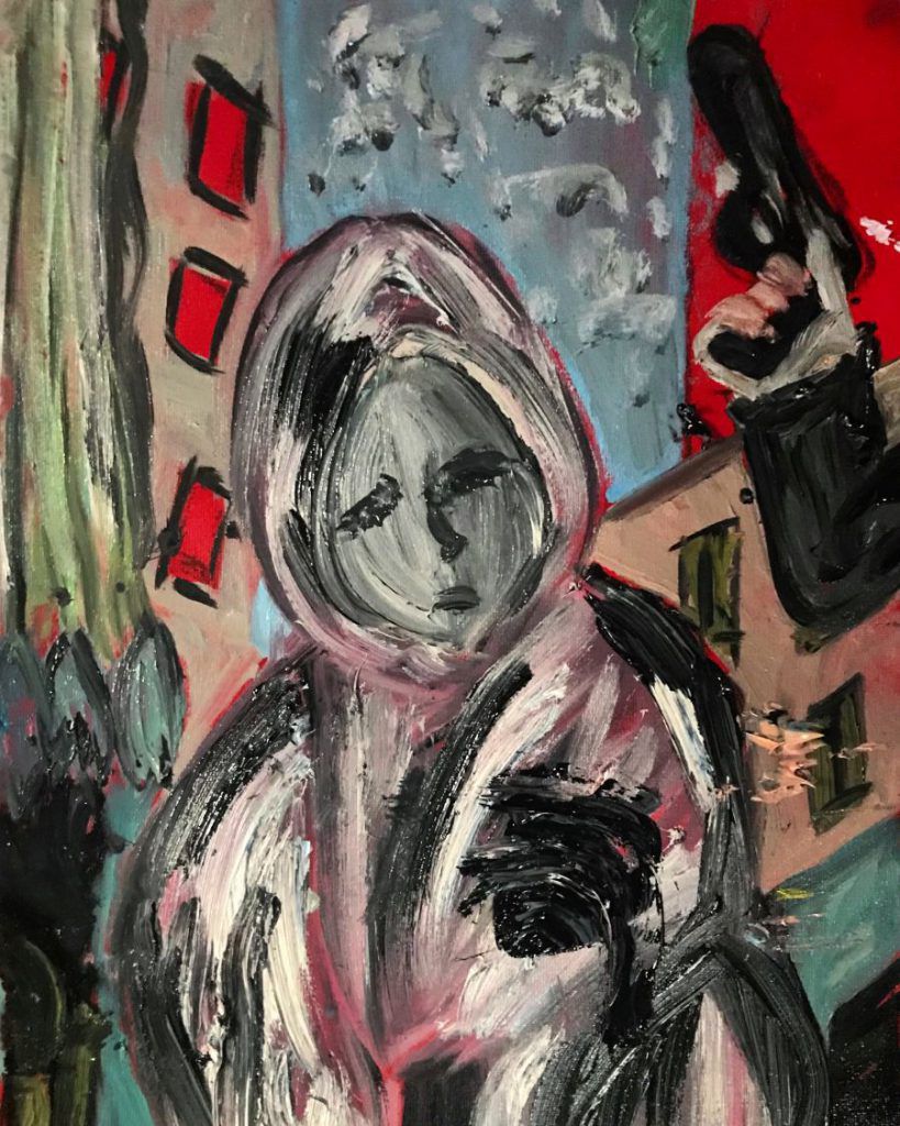 I tuoi dipinti sono intensi, plumbei e hanno sempre una qualche sorta di sfumatura oscura e tenebrosa. C’è un messaggio che vuoi trasmettere con le tue opere? O anche semplicemente a cosa pensi quando dipingi?