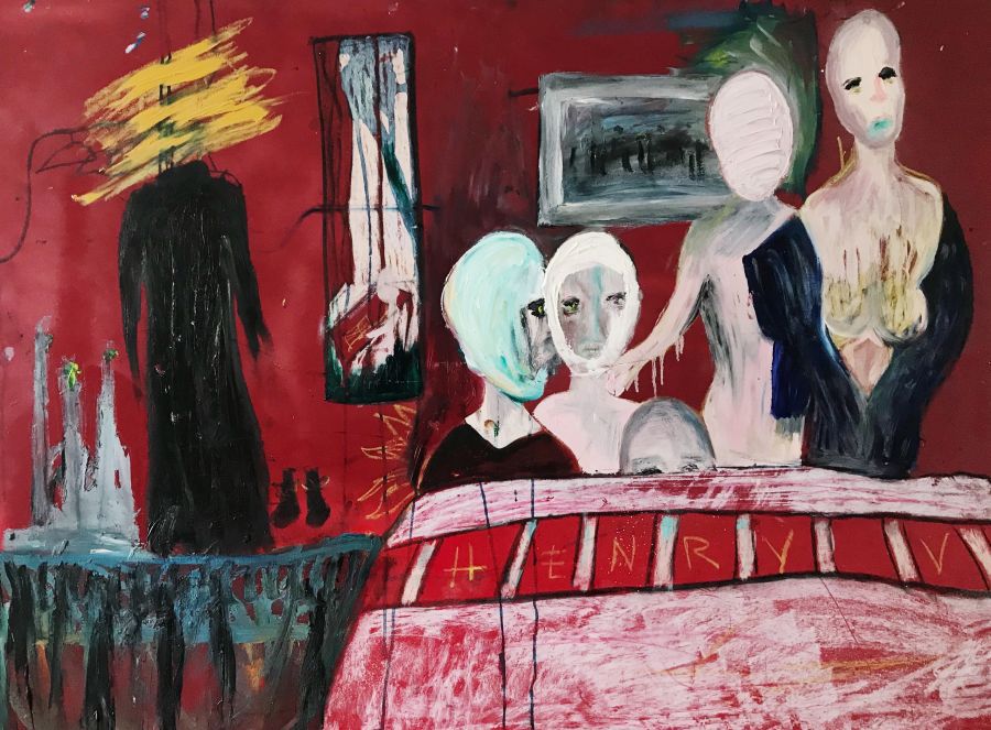 Come ho già accennato sopra, per i dipinti si parte da una fotografia che scaturisce la voglia di elaborarla o da una sensazione e dalla necessità di doversene liberare, dipingendo. Ho iniziato a dipingere in un momento della mia vita in cui non avevo grandi disponibilità economiche e, sin da allora, sono abituata a farlo su svariati supporti e utilizzando quello che mi trovo intorno in quel preciso istante. Al momento, nel mio studio si trovano forse un centinaio di quadri, alcuni su tela, altri su tavole di legno provenienti da vecchi mobili, o sezioni di porte, e così via. Il processo in sé non dura molto, raramente torno su un quadro in un secondo momento. Mi ci dedico per tre o quattro ore, o meno, a seconda dell’intensità dell’urgenza di ripulirmi e rovesciare ciò che ho dentro. Non sempre mi rendo conto che un’opera è conclusa. Quando questa sorta di raptus inizia a svanire, mi fermo per qualche minuto e osservo attentamente ciò che ho davanti. A volte anche un piccolo tocco di colore in più può dare la sensazione di completezza. Altre, purtroppo, non mi sono fermata in tempo e il quadro è, a mio avviso, da eliminare o ricoprire con una spessa mano di bianco per poi, quando asciutta, ricominciare.