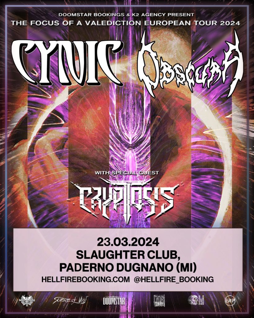 Assenti dai palchi italiani da ben otto anni i Cynic annunciano una data in quel di marzo del prossimo anno nel nostro Paese, concerto in cui i tedeschi Obscura faranno da co-headliner, mentre gli olandesi Cryptosis apriranno il concerto.
