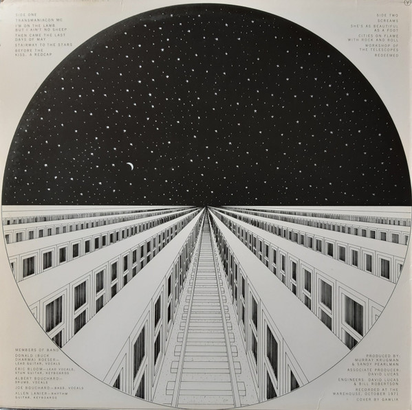 L’asso giocato di prima mano, le prime battute secche e nervose fatte di volute tortuose, veloci inseguimenti chitarristici, proprie dell’opening Transmaniacon MC (by Sandy Pearlman, Albert Bouchard, Donald Roeser, Eric Bloom), incidono col coltello lo spirito assetato di ultramusica, messi sotto pressione dalla sezione ritmica nera e pulsante, incattivita da Eric Bloom che graffia con la sua voce il corpo dell’ascoltatore dall’interno: “We’re pain, we’re steel, a plot of knives. We’re Transmaniacon MC” (MC sta per motorcycle club, e la song è in riferimento ai fatti di Altamont).