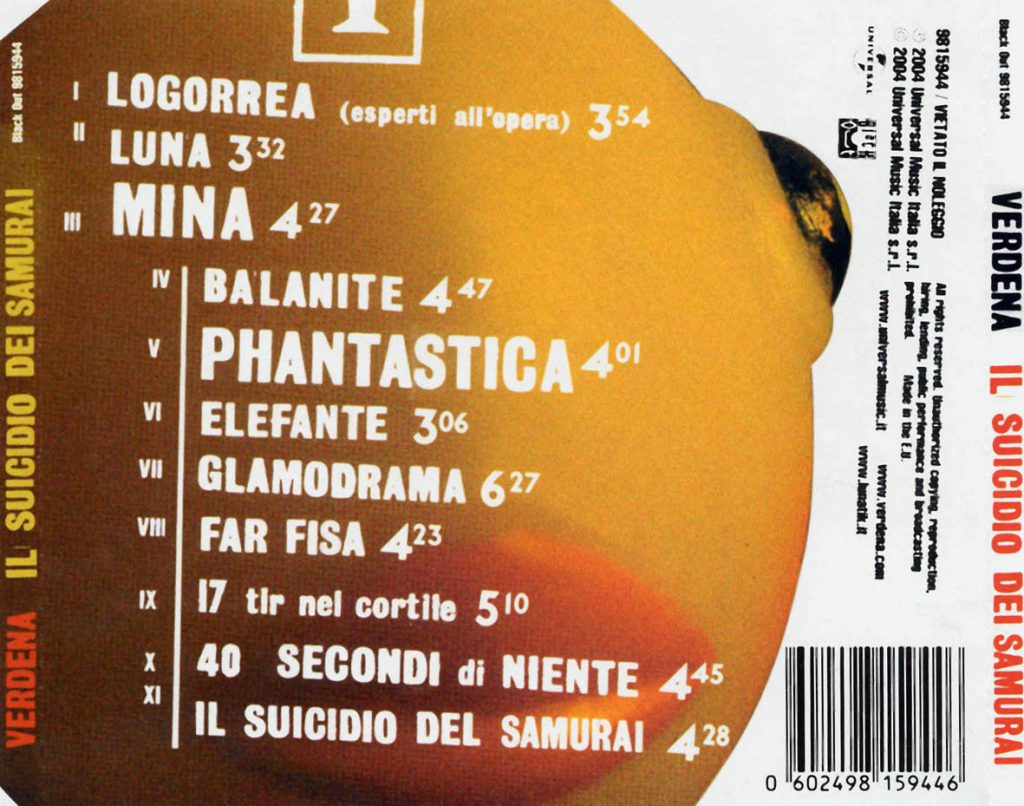 Altro elemento ricorrente è il valore aggiunto nei finali, eterogenei e spesso intriganti. Abbiamo già parlato di Luna, ma meritano di essere ricordate anche la virata a sorpresa di Phantastica, la dilatazione atmosferica e sognante di Glamodrama, uno dei pezzi più amati di questo disco pur non avendo avuto esposizione da singolo, e soprattutto, manco a farlo apposta, l’ultimo pezzo: Il suicidio del Samurai fa 1’30” scarso di canzone e 3 minuti esatti di coda, una particolarità sulla quale gli stessi Verdena hanno giocato in qualche esibizione, facendosi smontare gli strumenti sottomano durante l’esecuzione a chiusura del concerto.