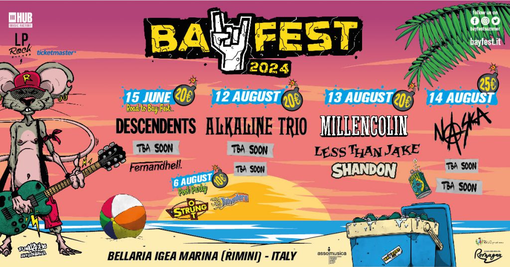Come ogni anno torna il Bay Fest e con esso alcuni dei nomi più blasonati della scena punk mondiale. I primi nomi dell’edizione 2024 alzano già la temperatura: Descendents, Alkaline Trio, Millencolin, Less Than Jake, Shandon, Naska e Fernandhell. Restiamo dunque in attesa dei prossimi.