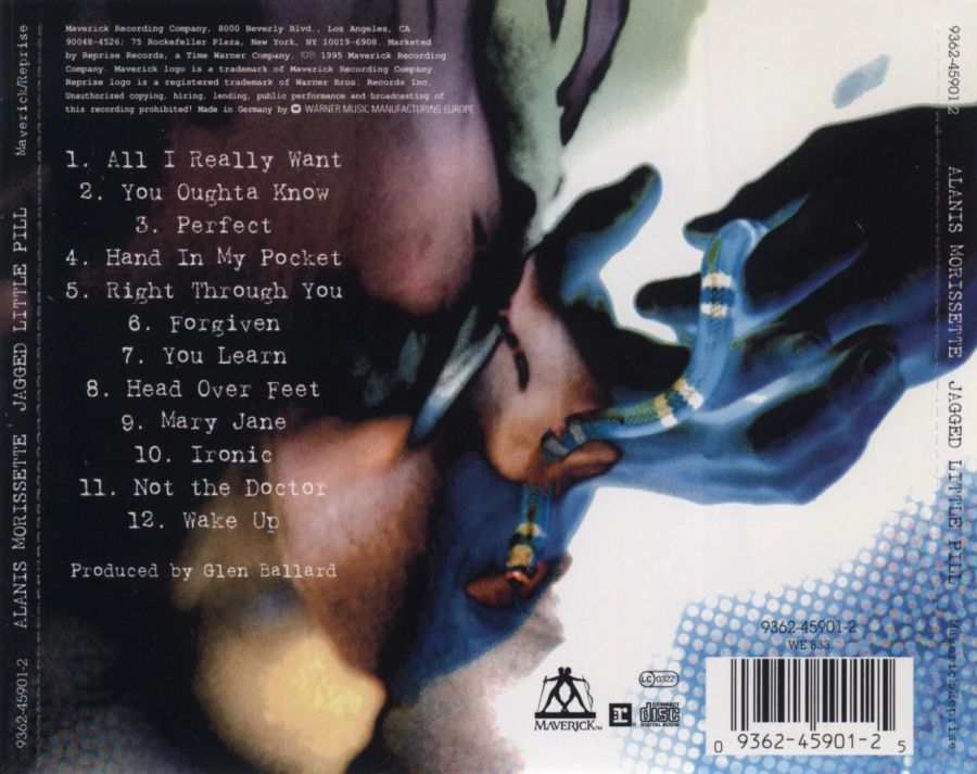 La Morisette qui esprime tutto il rancore che ha dentro dopo una relazione fallita, la voce è graffiante e le parole sono forti come in You Oughta Know: “Non è giusto che tu mi neghi la croce che porto, che tu mi hai dato”. La canzone, poi, è stata composta con la chitarra di Dave Navarro ed il basso di Flea dei Red Hot Chili Peppers. Che dire, viene fuori un capolavoro che regala alla cantante altri due prestigiosi premi, ovvero i Best Rock Song e Best Female Rock Vocal Performance. La prima canzone presentata alla casa discografica, invece, è Perfect che ha un arrangiamento molto più semplice, caratterizzato da voce e chitarra acustica. La melodia qui è più lenta e la cantante parla dell’assurdità di piacere agli altri solo se si è perfetti o se si seguono le aspettative altrui.
