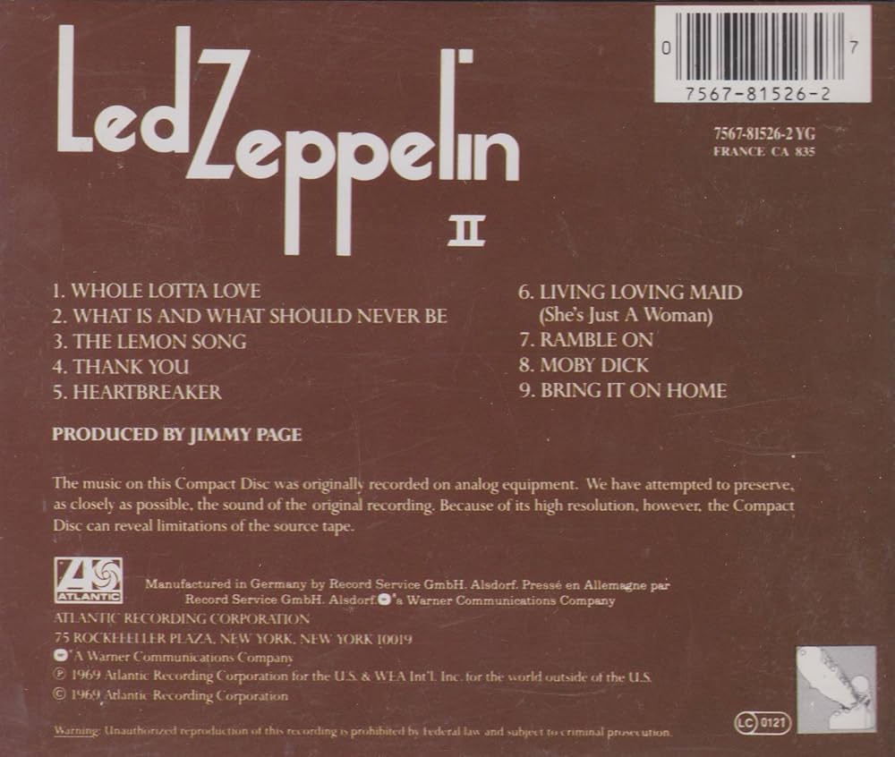 Le sessioni di registrazione di “Led Zeppelin II” si svolsero in una vasta gamma di studi, da Londra fino a Memphis, oltre oceano. Mixato in soli due giorni da Eddie Kramer, l’album vide finalmente la luce, accolto da un boato di successo. Non c’è bisogno di soffermarsi troppo sulle vendite e sui riconoscimenti: questo è l’album di brani leggendari come What Is and What Should Never Be, Heartbreaker, Thank You, Moby Dick, e naturalmente Whole Lotta Love, con la sua struttura travolgente e ipnotica, diventato simbolo dello stile musicale dei Led Zeppelin.
