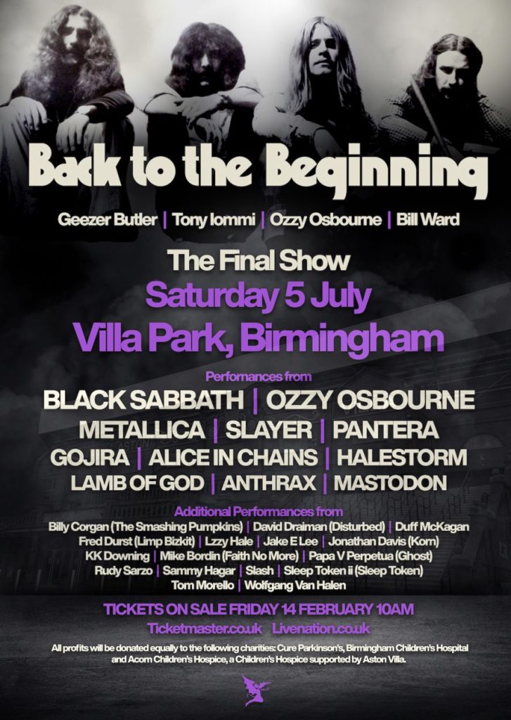 Ozzy Osbourne, Tony Iommi, Geezer Butler e Bill Ward torneranno insieme per un’ultima esibizione dei Black Sabbath questa estate. La storica band britannica ha annunciato che il concerto, il primo con Bill Ward alla batteria dopo 20 anni, sarà il loro addio definitivo alle scene. L’evento si terrà il 5 luglio presso il Villa Park di Birmingham, lo stadio da 42.785 posti della loro città natale, e sarà il set principale di un festival di un solo giorno.