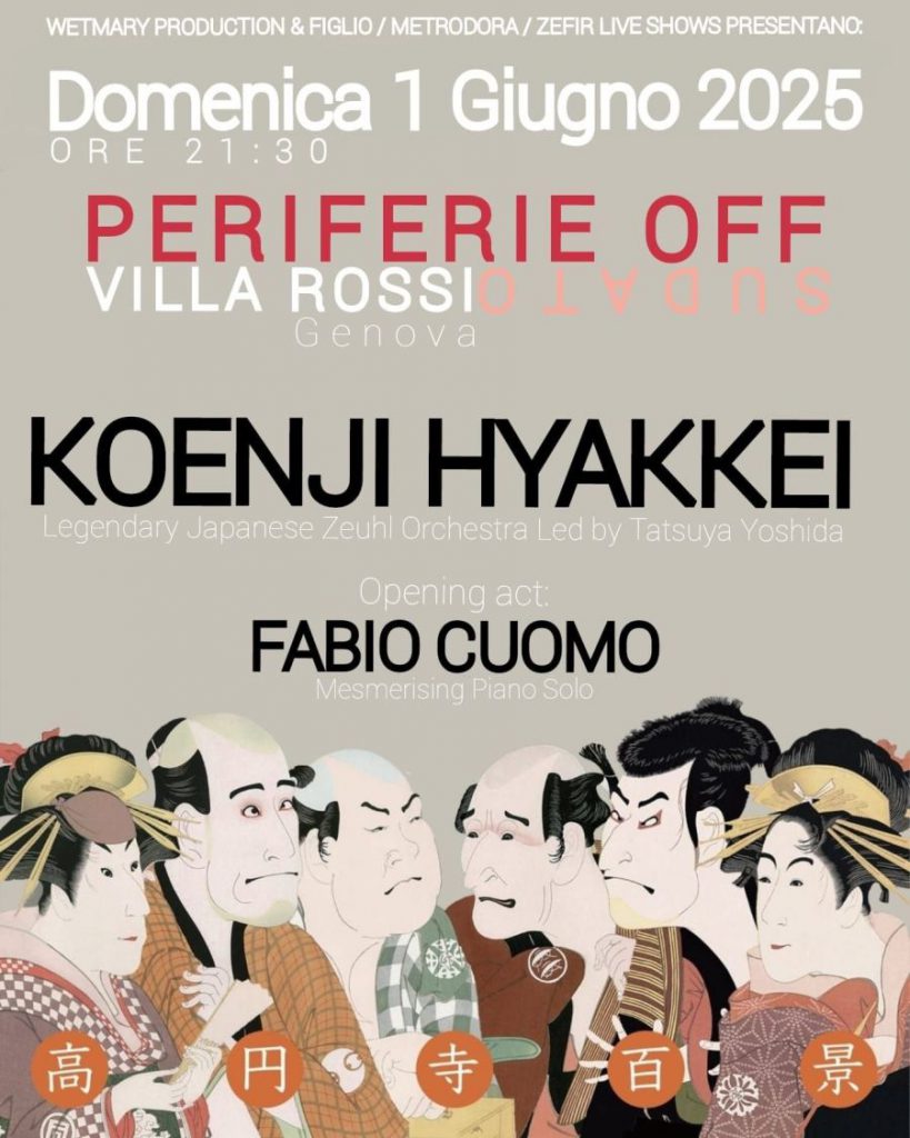 I Koenji Hyakkei si esibiranno il prossimo 1° giugno a Villa Rossi, a Genova, per l’unica data italiana del loro tour europeo. Fondato nel 1991 da Tatsuya Yoshida, noto per il suo lavoro con i Ruins, e dal cantante Aki Kubota, il gruppo è tra i principali rappresentanti del genere Zeuhl in Giappone. La loro musica, influenzata dalla storica band francese Magma, si caratterizza per una fusione tra rock progressivo, lirismo vocale e strutture ritmiche complesse. Il repertorio dei Koenji Hyakkei si distingue anche per l’uso di testi in una lingua inventata, modellata su fonetiche europee, senza significato semantico ma pensata per la musicalità.