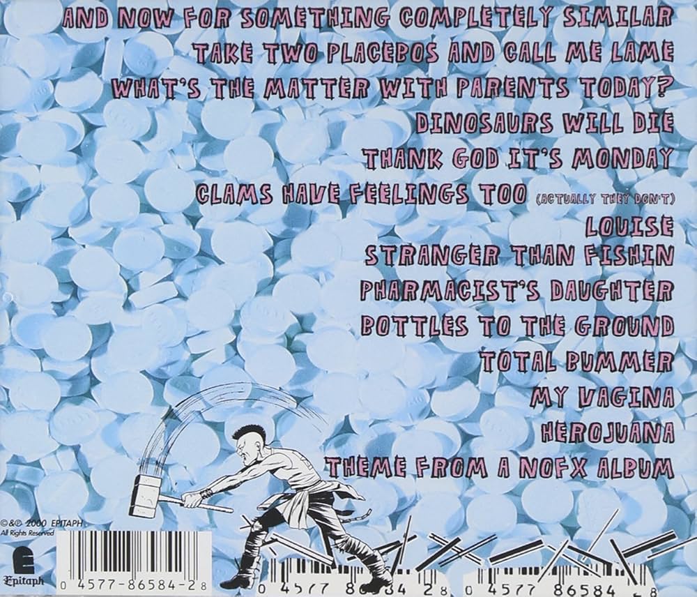 Ascoltarlo è come guardare una TV punk completamente fuori fase: si comincia con And Now for Something Completely Similar, intro brevissima che cita i Monty Python e prende in giro l’autoplagio, e si chiude con Theme From a NOFX Album, una marcetta ubriaca che si diverte a ridicolizzare la band stessa. In mezzo, un’esplosione di punk melodico fuori controllo, tra chitarre affilate, cori da urlare a squarciagola e testi che alternano assurdità comiche e verità brutali.
