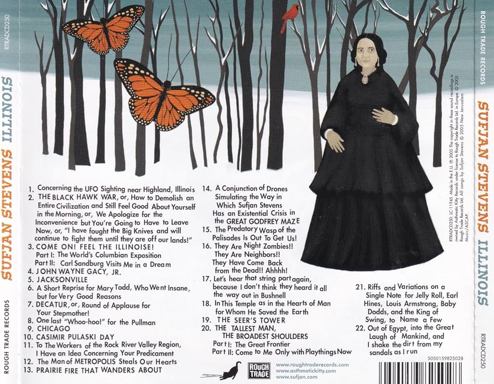 “Illinois“ è probabilmente il primo lavoro di Stevens completamente maturo sul piano compositivo, con una forte impronta “chamber”. Registrato in varie location economiche a New York, è un album che intreccia canzoni legate a luoghi, eventi e personaggi dello stato dell’Illinois. È il suo secondo concept album dedicato a uno stato americano, dopo “Michigan” del 2003, parte di un ambizioso (e poi rivelatosi ironico) progetto di realizzare un disco per ciascuno dei 50 stati USA. Anni dopo, lo stesso Stevens ammise scherzosamente che si trattava di una trovata.