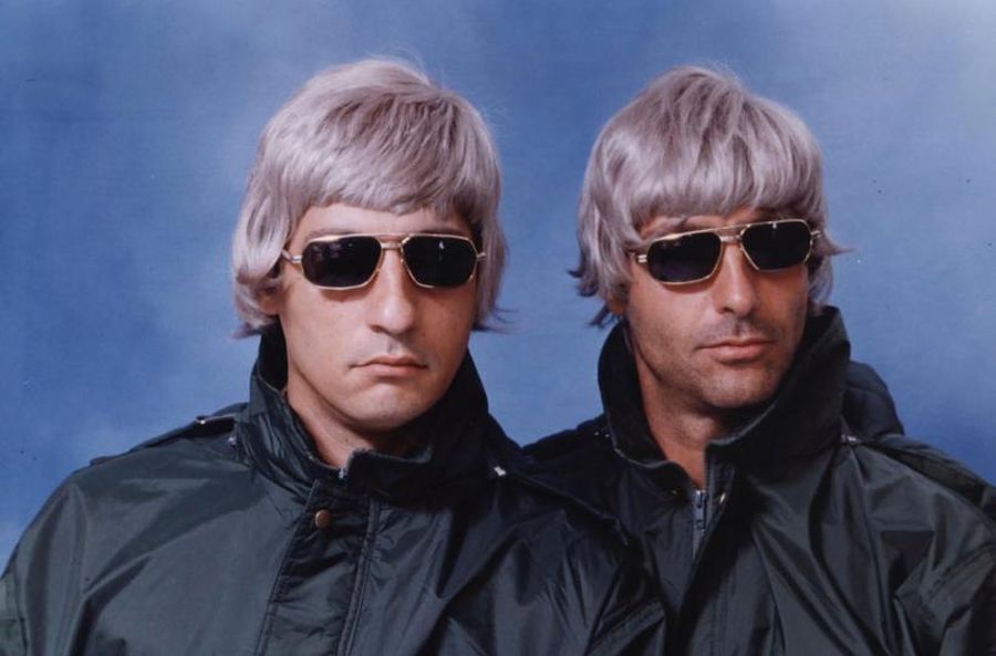 Nel 1998, mentre Liam e Noel Gallagher iniziavano a scrutarsi in cagnesco dietro le quinte dei festival, in Puglia qualcuno li stava già prendendo di mira con precisione chirurgica. Succedeva su Telenorba, dopo pranzo, all’interno di un programma diventato culto: Love Store, ideato da Gennaro Nunziante e Vito Capuano. Ed è lì che fecero irruzione due caschetti biondi, occhiali scuri e un accento tutto loro. Nascevano gli Oesais, ovvero gli Oasis riletti – e stravolti con genio – in dialetto molfettese dal duo comico Toti e Tata, alias Emilio Solfrizzi e Antonio Stornaiolo, per cui le presentazioni sono superflue, direi.