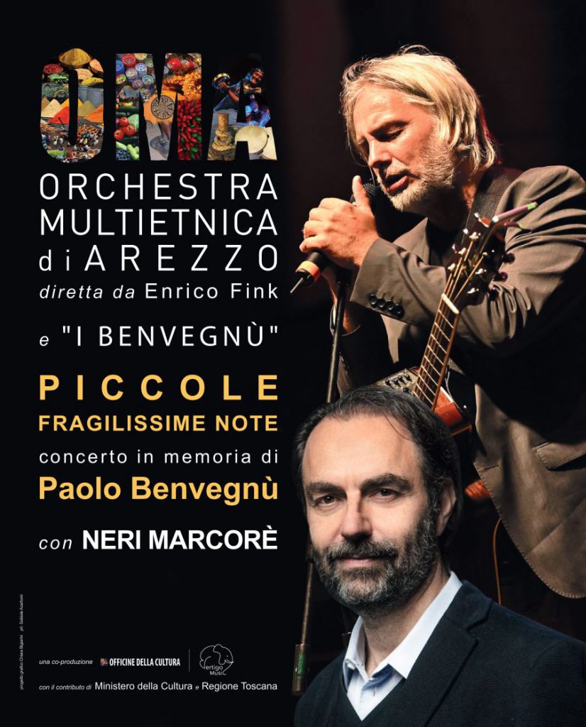 Piccole Fragilissime Note è molto più di un semplice concerto: è un intreccio di voci, strumenti e memorie, un ponte tra passato e presente, tra chi lo ha conosciuto e chi lo ha amato da lontano. Sul palco, oltre alla sua storica band, ci sarà l’Orchestra Multietnica di Arezzo, diretta da Enrico Fink – con cui Benvegnù aveva condiviso progetti importanti – e la straordinaria partecipazione di Neri Marcorè. Insieme, daranno nuova vita ai brani più intensi del suo repertorio, ma anche a canzoni amate da Paolo, in un percorso musicale che attraversa De André, Ciampi, Gaber, Paul Simon e i Beatles.
