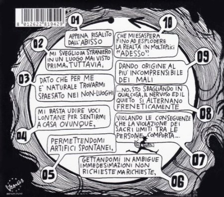 Inutile snocciolare ogni singolo passaggio del disco che meriterebbe, da parte di chi non ci ha mai dedicato del tempo o non ricorda, l’immedesimazione diretta senza alcun filtro interpretativo: di sicuro c’è una traccia più di ogni altra, gettandomi in ambigue immedesimazioni non richieste ma richieste, che rappresenta il climax nonché l’inizio del crollo delle certezze del Mago, il tutto sorretto da una magnifica jam di più di 10 minuti di Lucio Corenzi al contrabbasso e Bruno Dorella alla batteria. Le ultime due tracce sono una sorta di epilogo a finale aperto ed una postfazione, che proprio come ogni libro audio si chiude con una sorta di saluto sui generis del narratore che vuole essere profezia: «Siamo arrivati alla fine di questa cosa, non delle persone che ve la propongono».