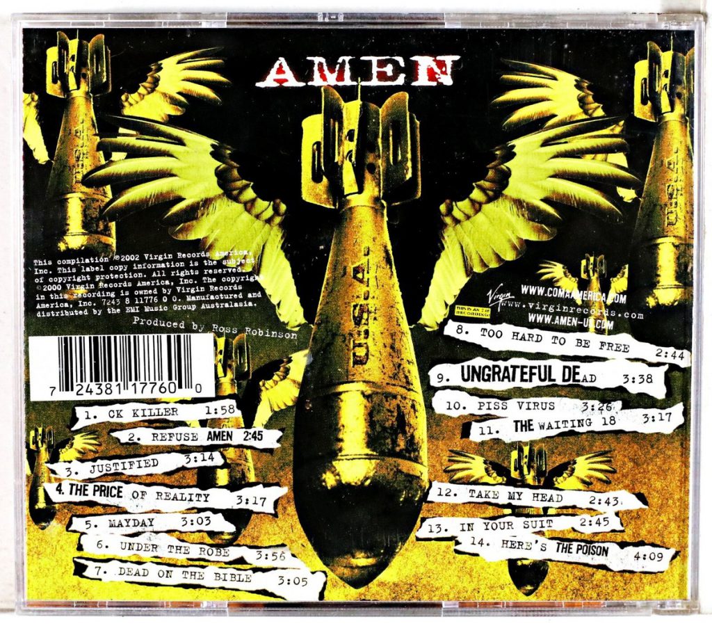 Non era proprio il 2000, ma poco dopo. Forse quello successivo. MTV, che questo mese è stata sepolta definitivamente, dopo essere già clinicamente morta da un bel pezzo, era ancora parte della mia riserva di caccia (di musica nuova). I gestori del network, grandi amanti della censura, non potevano più ignorare le band considerate dannose, soprattutto visivamente, il cui successo era in ascesa e, in qualche modo, per vie traverse o in programmi mandati in fascia notturna, si videro costretti a passare certi videoclip carichi di significati, pure politici, di certo visualmente violenti. Tra quelli c’era The Price of Reality. E fu lì che scoprii gli Amen.