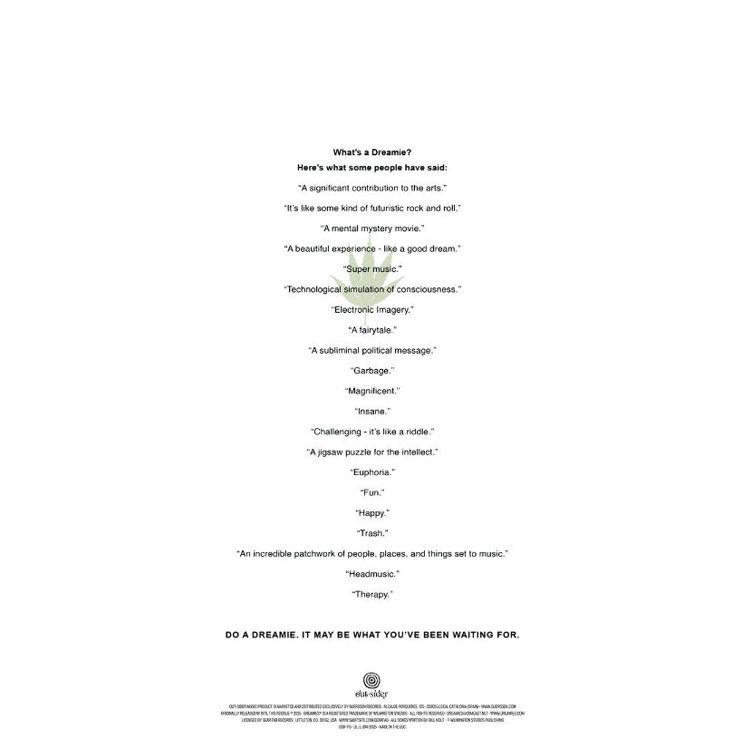 Anche la città di Philadelphia – parallelamente alle meraviglie del soul spacca-classifiche – aveva le sue etichette indipendenti, che producevano principalmente artisti di matrice punk. Dal nulla, nel 1974, la misteriosa etichetta indipendente Stone Theatre Productions pubblica un altrettanto misterioso album: si tratta di “Auralgraphic Entertainment”, uscito a nome Dreamies e che ha rivisto la luce in una recente ristampa curata dalla Guerssen. Pochi fronzoli in copertina: in campo blu ci sono una testa umana stilizzata che al suo interno ha i nomi delle uniche due tracce, una per lato, Program Ten e Program Eleven, ventisei minuti e rotti ciascuna. Poi la produzione in “fluid stereo”, con tanto di istruzioni per l’ascolto sul retro di copertina e la promessa di una nuova forma di intrattenimento personale. La chiosa finale è che Dreamies e “Auralgraphic Entertainment” sono marchi registrati di proprietà di Stone Theatre Productions. Ma chi sono costoro? In realtà trattasi di un unico artista, che si chiama Bill Holt.