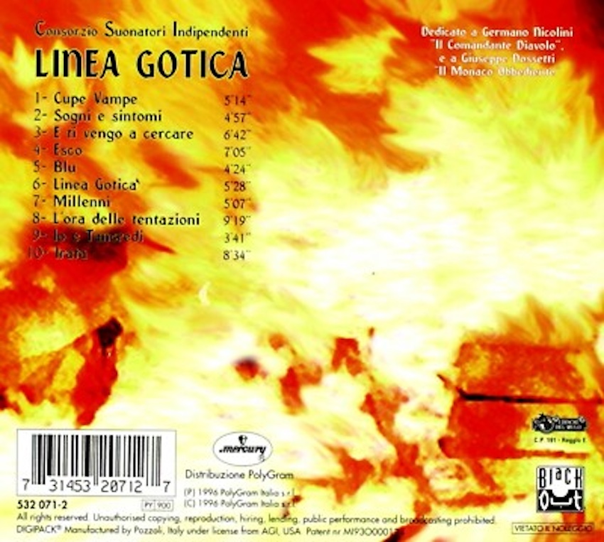 “Linea Gotica” è uno di quei dischi di cui è impossibile parlare male, se si capisce un minimo di musica, arte, sentimenti, cultura. Considerato da gran parte della critica il climax creativo del duo Ferretti-Zamboni, oltre il quale qualcosa si è irrimediabilmente deteriorato, e chiaramente il miglior disco della breve epopea dei CSI, durata neanche un decennio.